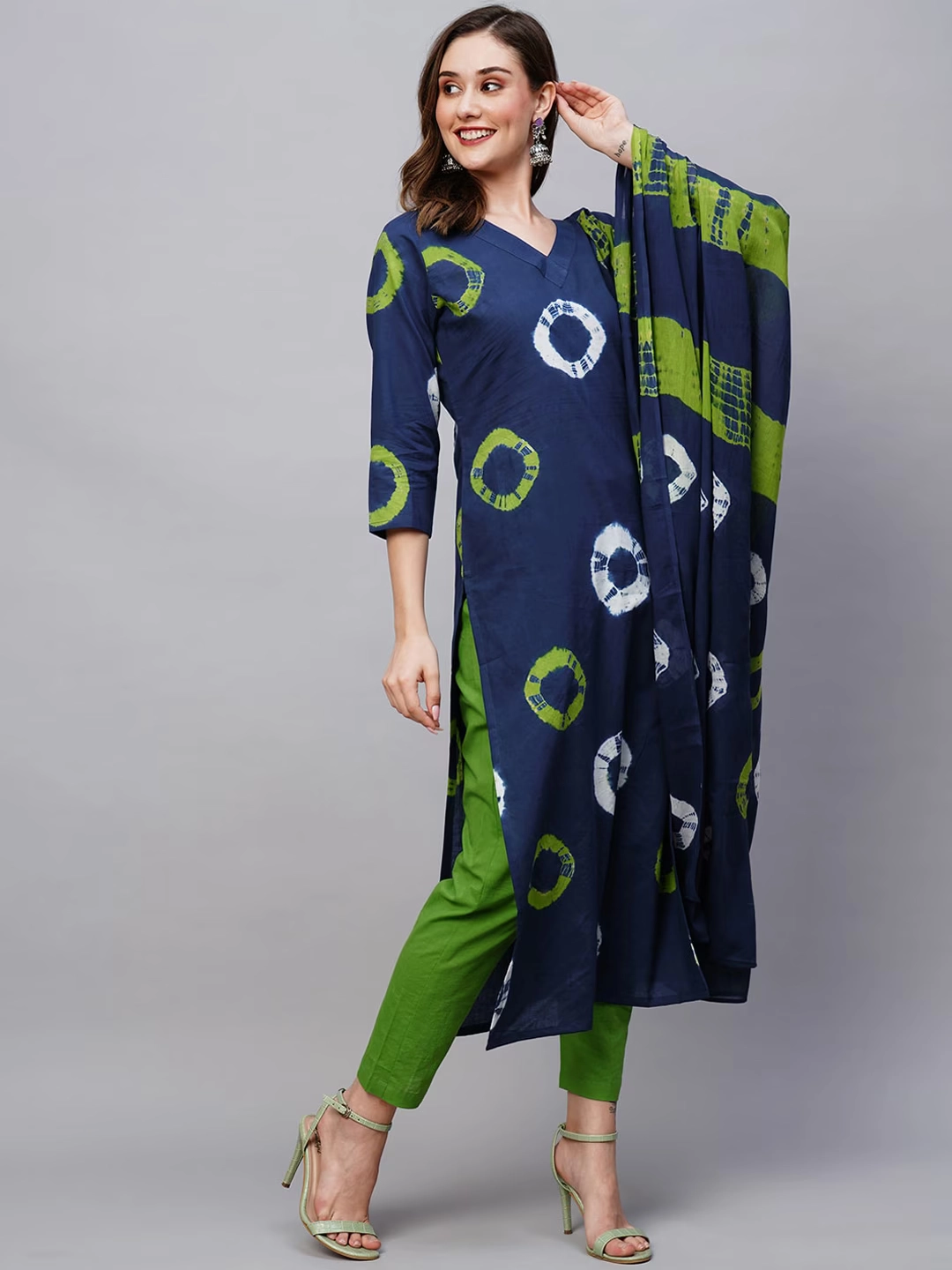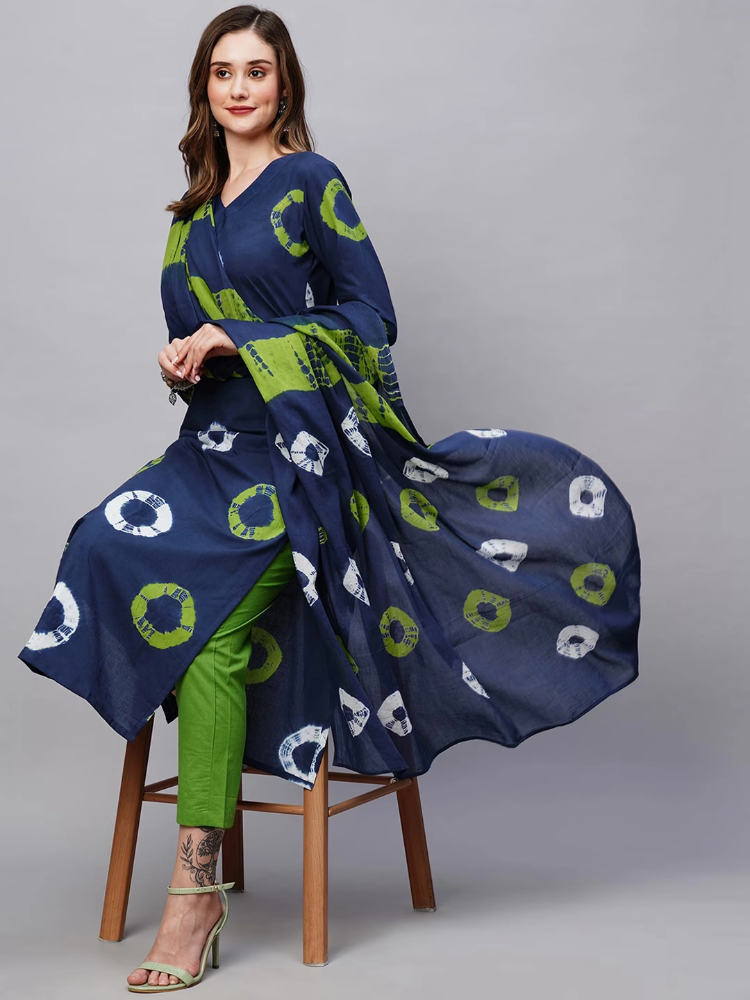Bandhani Dyed Kurta with Trousers & Dupatta